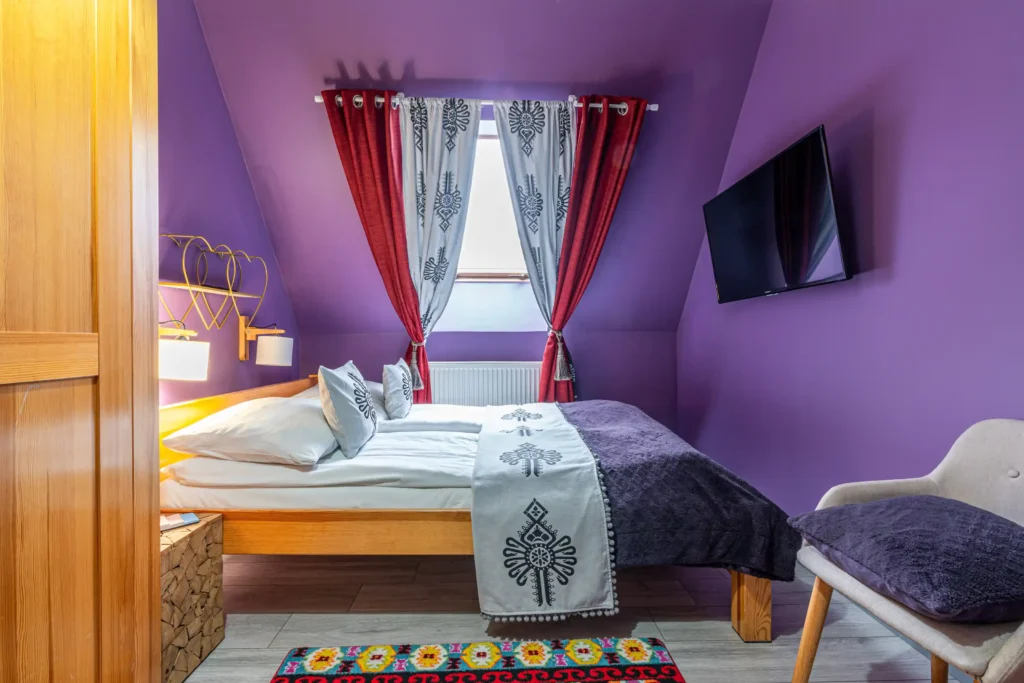 Pokochaj klimatyczne wnętrza, stworzone z myślą o Twoim relaksie. Zadbaliśmy o wszystkie detale, aby Twój pobyt w Folkowym Dworku był niezapomniany. W każdym pokoju znajdziesz wygodne łóżka, mięciutkie dodatki, drewniane meble i unikalne wzornictwo. Dodatkowo w obiekcie czeka na Ciebie mnóstwo udogodnień oraz smaczne śniadania. Wybierz sprawdzone pokoje Murzasichle i ciesz się wyjątkowym pobytem w górach.<