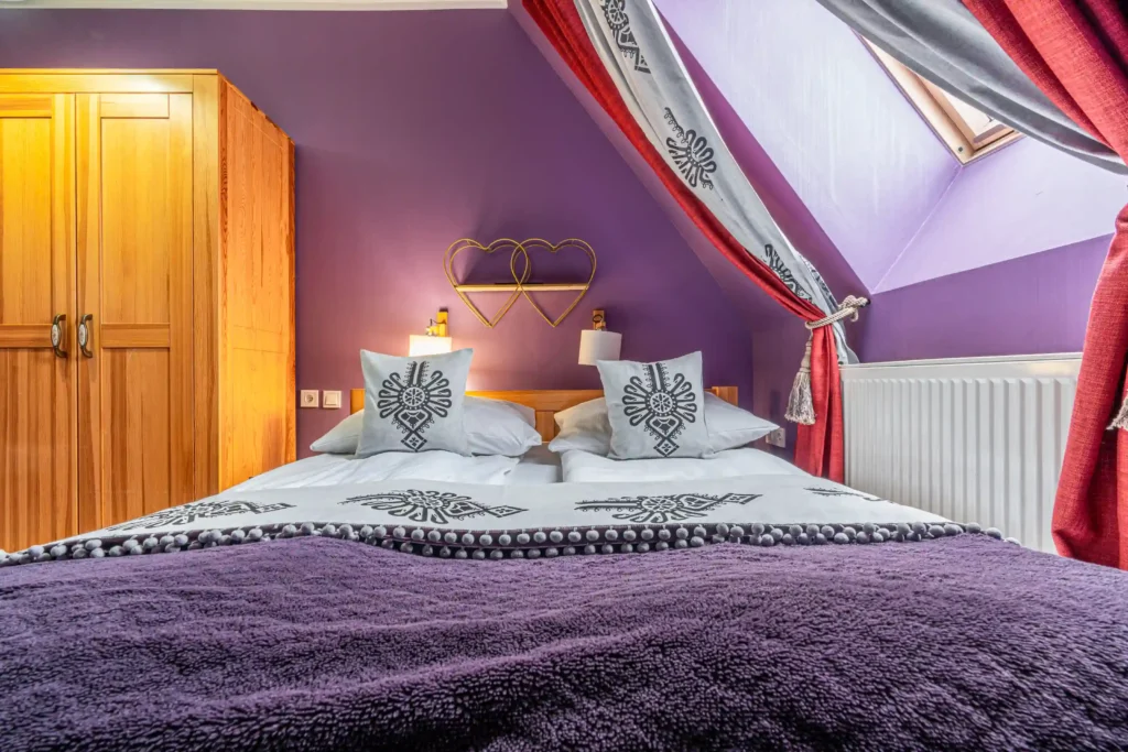 Komfortowy pokój 2-osobowy, doskonały na romantyczny weekend w górach. Naturalne drewno, ciepła kolorystyka i oryginalne dodatki, tworzą doskonałą przestrzeń do relaksu.